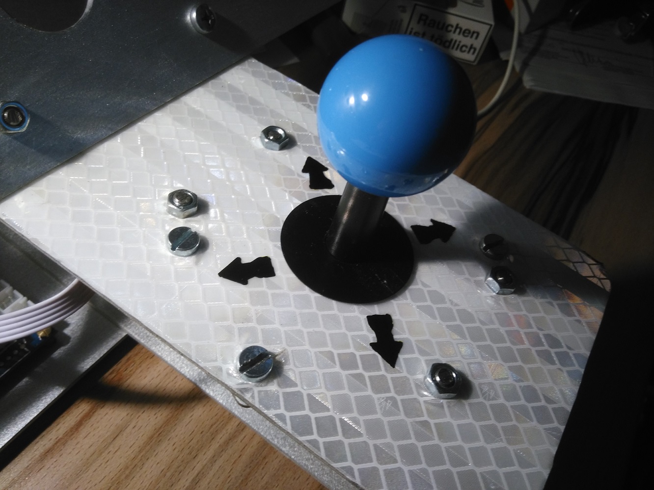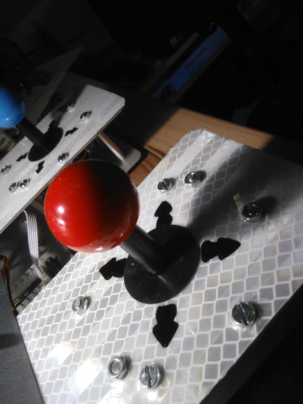 1 Der Neubau eines Joysticks 16. Dezember 2016, 05:33 Der Plan ist: Ein Joystick zu bauen, welcher komplett auf mich zugeschnitten ist. Schritt 1.: Ich habe erstmal die Teile bestellt , welche im Anhang sind, nun wate ich erstmal bis diese ankommen. Schritt 2.: Meine Frau hat mir Alubleche mitgebracht , welche ich als Gehäuse nutzen kann (Bilder folgen). Schritt 3.: Warten auf den Postboten - > irgendwann zwischen 15.12. und 22.12. soll das Paket kommen Ich werde Euch auf dem laufenden halten, sowie es da ist geht es los, die Bohrer sind geschliffen, der Riemen von der Standbohrmaschine ist in der richtigen Stellung. Fortsetzung folgt. Statusupdate: Laut Sendungsverfolgung kommen die Teile erst am 04.01.2017, also wird das wohl nichts mehr dies Jahr Naja, dann kann ich mich weiterhin unserem anderen kleinen Projekt widmen: Wir bauen unsere neue Wohnung um! So, die Bleche wo die Taster und Joysticks reinkommen habe ich schon mal bearbeitet, die Ecken rund gemacht. Die Bohrer für die Löcher sind auch schon da. Warte ich jetzt nur noch auf die anderen "Zutaten". heute war es dann soweit: Die "Zutaten" sind gekommen! Ich habe mal ein Foto gemacht und angehängt. Nun steht meinem Projekt nichts mehr entgegen. Ausser vielleicht meine Frau, die hat tatsächlich gesagt : " Erst die neue Wohnung, dann darfst Du in die Werkstatt". Wenn Sie am arbeiten ist geht es los! So, ich bin schon mal ein wenig am planen wie ich die Anordnung der Knöpfe mache. Dies will ja gut geplant sein! Ein wenig schwebt mir vor die Armlehne vom Fendt nachzubilden. Aber vielleicht hat ja auch noch wer anders eine gute Idee? Ich möchte das ja auch so haben, das man die "Kräne" z.B. am Rückewagen mit zwei Joysticks bewegen kann, ohne das die Funktion Frontlader darunter leidet. Wer ne Idee hat kann sich gerne melden. Hallo, meine Frau musste kurzfristig weg: (Trauerfall in der Familie, aber weitläufiger Verwandter) Ich habe schon mal ein wenig angefangen. Mein Plan sieht vor den kompletten Joystick schräg auf der Armlehne vom Bürostuhl, mit einer "Schnellverbindung" zu montieren. Was ich jetzt so in der Werkstatt gebaut habe gefällt mir schon mal ganz gut, mal sehen wie ich die Verbindung mit dem Stuhl hin bekomme. Aber für Heute ist erstmal Feierabend. Das 2. Problem was ich jetzt noch habe ist, dass die Kabel ein wenig kurz sind, ich habe aber den Verkäufer schon kontaktiert, ob es Verlängerungen gibt. Sonst läuft aber alles besser als gedacht. Der Verkäufer hat sich nun gemeldet, leider gibt es keine Verlängerungen für die Kabel. Da man ja nicht dumm ist habe ich jetzt mal die Sache selber in die Hand genommen und werde mir die Verlängerungen selber konfektionieren. Wie auf den Bildern 0014 - 0018 zu sehen habe ich mich für diese Kabel und Kabelschuhe entschieden und diese gleich bestellt. Im Januar wird alles da sein und ich werde mir dann alles nach meinen Vorstellungen montieren können. Jetzt kommt bei vielen vielleicht noch die Frage auf, welche Farbe das Ganze bekommt: Ich habe mich entschieden dich Alubleche einfach nur zu schleifen und dann so zu lassen. Ich denke mal das, dass die Beste Lösung ist um später nochmal was umzubauen (wenn da Bedarf). Bild 0019 zeigt den Bürostuhl an den ich gedacht habe. Die Verlängerungskabel sind jetzt auch zu 75% fertig, ich habe die Kabelschuhe aufgepresst und noch zusätzlich verlötet. Danach noch Schrumpfschlauch drüber und jetzt muss ich noch auf die Kabelschuhe für die andere Seite warten (sind bestellt). Und dann kann es schon weiter gehen. Es sind noch ein paar neue Bilder da. Leider muss ich immer noch auf die Kabelschuhe für die "Verlängerungskabel" warten (diese kommen aus Bulgarien, voraussichtlicher Liefertermin: 07. - 14. 01.2016 ). Bis dahin sind mir leider ein wenig die Hände gebunden. --> dafür kann ich jetzt aber erstmal in der neuen Wohnung weiter machen! So, da jetzt Gestern alle Teile angekommen sind, habe ich mich heute Morgen hingesetzt und die Verlängerungskabel fertig gemacht. (siehe Bilder: 0029 - 0031) Als ich das dann endlich fertig hatte habe ich mit der Montage befasst. (Bilder: 0032+0033) Zum Schluss habe ich dann einen ersten Funktionstest gemacht, sieht schon ganz gut aus, der Rechner hat sofort alles erkannt und nach ein wenig umstecken hatte ich auch die Knöpfe an der richtigen Stelle. Leider ist mir beim Montieren eine LED kaputt gegangen , aber was soll´s? Jetzt bleibt es erstmal so! (Bilder: 0034 + 0035). Jetzt werde ich erstmal Testen und danach mal gucken ob ich den Joystick aussen noch mit Plexiglas verkleide oder ob ich den einfach offen lasse? Bilder 0001.jpg 393,48 kB, 1.500×1.500, 68 mal angesehen 0002.jpg 361,17 kB, 1.332×999, 56 mal angesehen 0003.jpg 358,42 kB, 1.332×999, 53 mal angesehen 0004.jpg 334,02 kB, 1.332×999, 54 mal angesehen 0005.jpg 517,89 kB, 1.332×999, 54 mal angesehen 0006.jpg 396,95 kB, 1.332×999, 55 mal angesehen 0007.jpg 331,26 kB, 1.332×999, 49 mal angesehen 0008.jpg 428,01 kB, 1.332×999, 67 mal angesehen 0009.jpg 421,82 kB, 1.332×999, 60 mal angesehen 0010.jpg 358,48 kB, 1.332×999, 56 mal angesehen 0011.jpg 311,32 kB, 1.332×999, 58 mal angesehen 0012.jpg 375,39 kB, 1.332×999, 54 mal angesehen 0013.jpg 370,54 kB, 1.332×999, 60 mal angesehen 0014.jpg 73,52 kB, 1.059×1.000, 44 mal angesehen 0015.jpg 14,48 kB, 500×375, 55 mal angesehen 0016.jpg 14,75 kB, 500×375, 52 mal angesehen 0017.jpg 15,37 kB, 500×375, 46 mal angesehen 0018.jpg 40,88 kB, 1.000×860, 47 mal angesehen 0019.jpg 3,99 kB, 135×135, 265 mal angesehen 0020.jpg 487,53 kB, 1.332×999, 53 mal angesehen 0021.jpg 336,71 kB, 1.332×999, 49 mal angesehen 0022.jpg 345,31 kB, 999×1.332, 51 mal angesehen 0023.jpg 504,16 kB, 1.332×999, 50 mal angesehen 0024.jpg 381,27 kB, 1.332×999, 47 mal angesehen 0025.jpg 340,41 kB, 1.332×999, 46 mal angesehen 0026.jpg 350,08 kB, 1.332×999, 46 mal angesehen 0027.jpg 273,53 kB, 999×1.332, 45 mal angesehen 0028.jpg 323,74 kB, 1.332×999, 44 mal angesehen 0029.jpg 382,61 kB,
