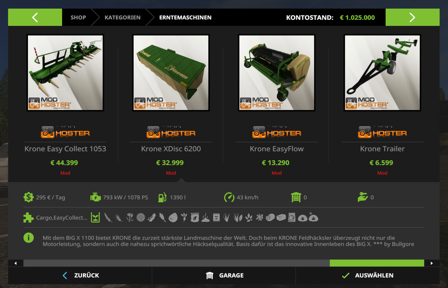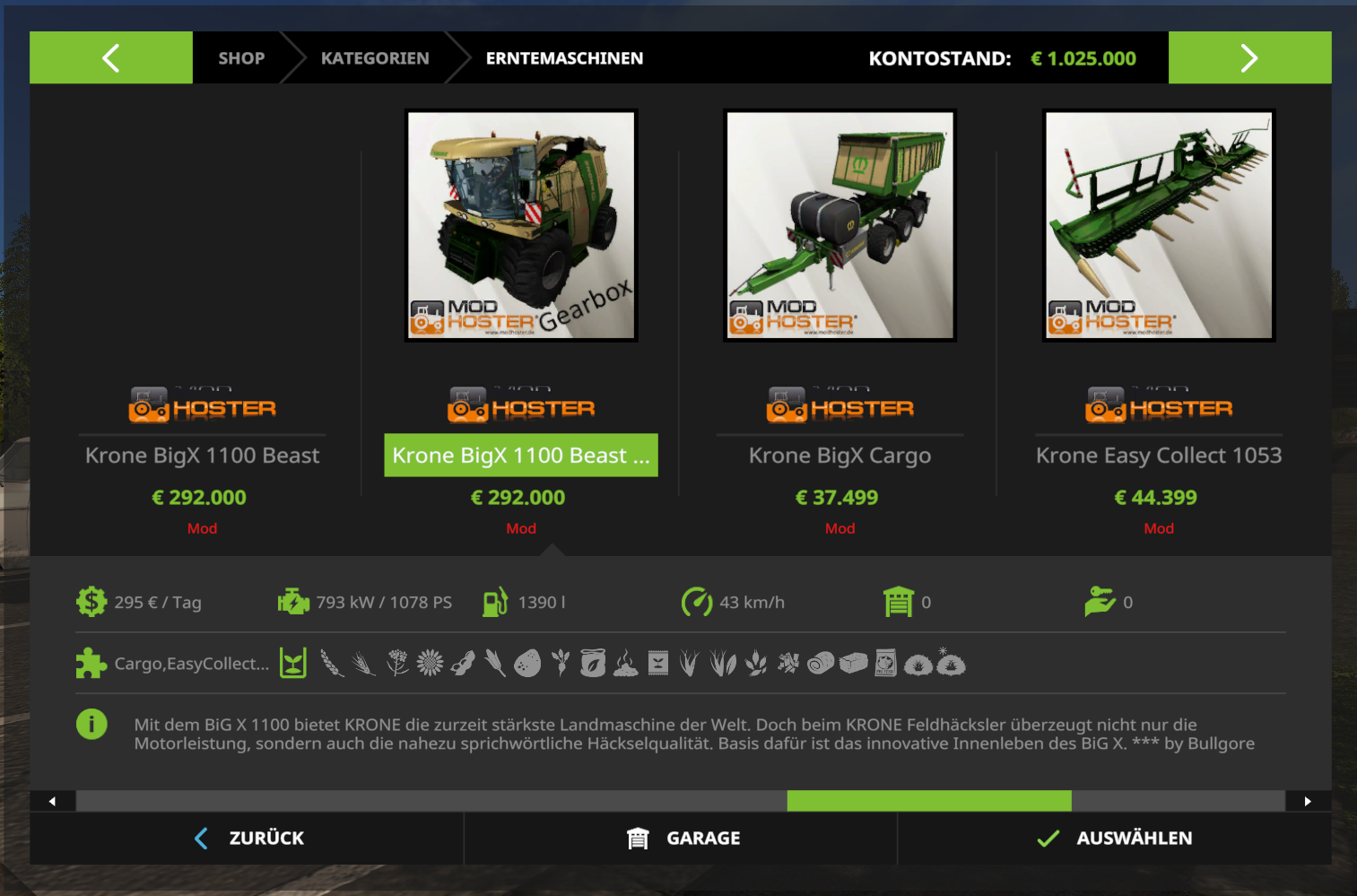 8 29. April 2017, 23:17 modhoster.de/mods/krone-big-x-1100-mit-bunkerkapazitat jetzt sollte es klappen